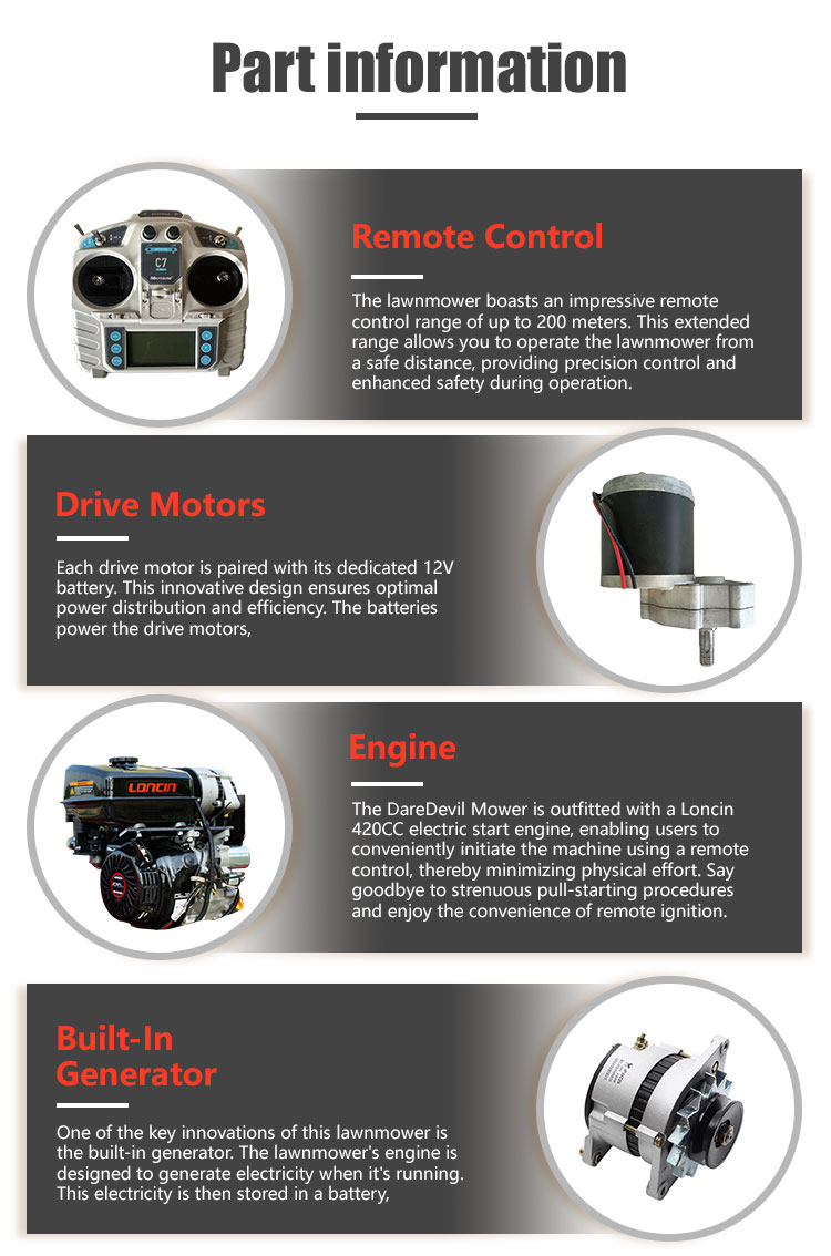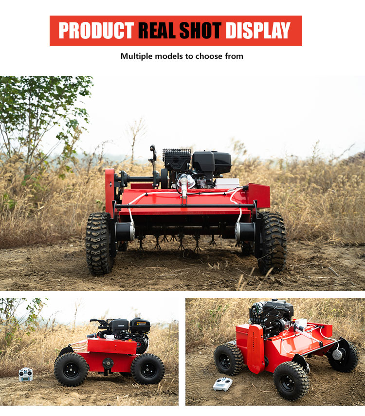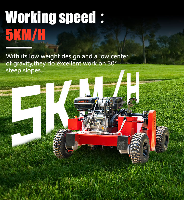 The Y3-800 Wide Wheel Flinger Remote Control Mower is a high-performance lawn maintenance machine designed for efficiency and ease of use. Featuring an 800mm cutting width, it ensures fast and uniform grass cutting with a working efficiency of 2500m² per hour, making it ideal for large areas. Powered by a reliable 15HP engine, this mower delivers strong and consistent performance.With a lightweight yet sturdy design (200kg) and compact dimensions (1050×1070×750mm), it offers excellent maneuverability across different terrains. The 5km/h travel speed ensures smooth operation, while its 30° climbing capability allows it to handle moderate slopes with ease.The remote-control function provides added convenience and safety, enabling operators to guide the mower from a distance. Perfect for commercial landscaping, parks, and large lawns, the Y3-800 combines power, efficiency, and user-friendly control for professional-grade results.
